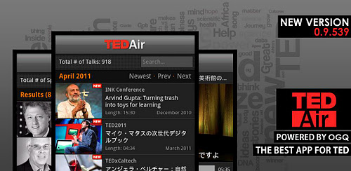 Have you ever tried to use TED Air in your android device? This application is really very good android app that you must have it. It brings many features which can make you really love it. The newest version is TED Air 0.9.539. TED Air 0.9.539 could be downloaded from Google Play Store. So, if you need to download it in your android device, just open your Android Market application and search TED Air. Below is detail of the app.